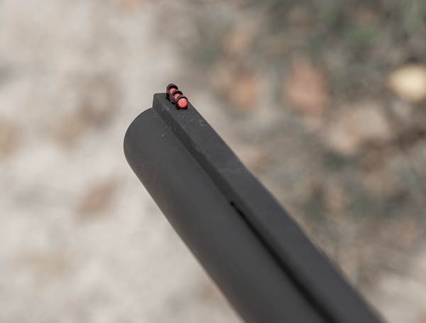 Длина ствола — 76 см, патронника — тоже 76, но уже в миллиметрах. Канал ствола и патронник хромированы, что вкупе с инерционной системой перезарядки допускает некоторые вольности с уходом. Так, например, ничего страшного с таким ружьем не произойдет даже в том случае, если многие километры, выхоженные за охотничий день, совершенно не оставили сил на обязательный минимум ухода за оружием после охоты — и даже если такие случаи будут повторяться. Мне достаточно часто приходится общаться с охотниками, последним доводом которых в спорах о надежности их самозарядного оружия (напоминаю — я все еще смотрю на «гладкие» полуавтоматы искоса) является фраза: «Да я свое вообще раз в год чищу, и то после сезона! И все работает, как часики!». Так вот, Ozkan Arms FX 015 — именно для таких. Контакт пороховых газов с внутренностями оружия тут происходит лишь в хромированной трубке, образующей канал ствола и патронник. Соответственно, отложений порохового нагара в местах, отвечающих за надежность работы автоматики, не может быть по определению.
