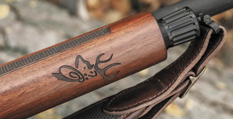 Мой экземпляр выполнен в классическом охотничьем стиле: его ствол и верхняя половинка ресивера имеют черную глянцевую поверхность, нижняя же радует глаз лазерной гравировкой по матовому алюминию — и следует отметить, что ее рисунок «а-ля английские арабески», столь характерный для охотничьего оружия совершенно другого класса и цены, ничуть не режет глаз, а вполне гармонично вписывается в остальной экстерьер ружья. Все сдержанно, со вкусом, без «цыганщины» и аляповатости.