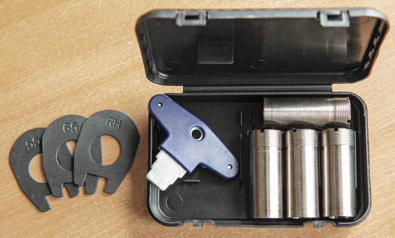 При всем моем настороженном отношении к продукции с клеймом Made in Turkey после внешнего осмотра Ozkan Arms FX 015 должен признать, что изделие сие изготовлено без явных «косяков». Каких-то грубых заусенцев, требующих тщательной обработки напильником в целях профилактики членовредительства оператора, не выявлено; покрытие всех видимых деталей равномерное, без разводов и прочих огрехов. В комплекте также нашлась симпатичная коробочка с набором из пяти дульных сужений-вкруток на любой вкус (от «цилиндра» до «полного чока» включительно), ключ для их смены и набор прокладок для изменения отвода и погиба приклада под антропометрию конкретного стрелка. Ну что же, уже неплохо!
