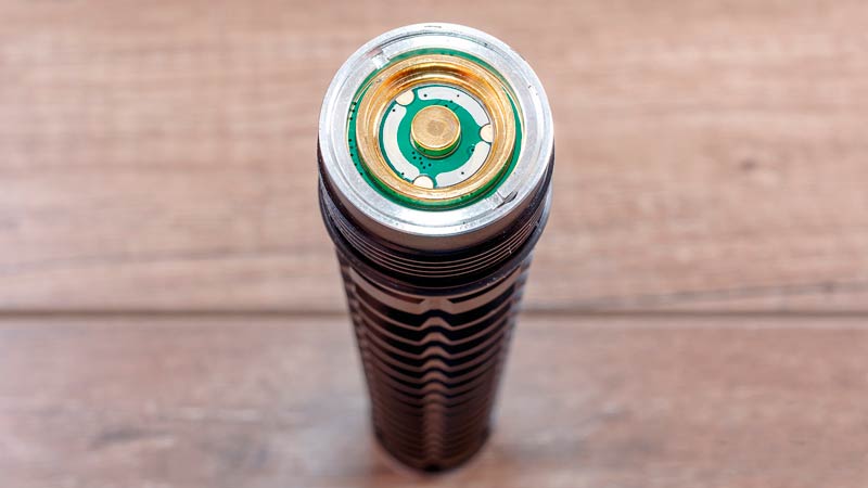 Продовгувата частина представляє собою монолітний акумуляторний блок, який складається з двох батарей 18650 загальною ємністю 7000 mA●h. З одного боку, це дещо спірне рішення, оскільки у Olight ще не було ліхтаря серії Javelot з монолітним акумуляторним блоком, але, з іншого, це було зроблено не просто так, а для збільшення енергоефективності ліхтаря. Посудіть: у максимальному режимі він може працювати до 2,5 год, а на мінімальному — до 8 днів! Це більш ніж у 2,5 разу довше, аніж у попередника. За необхідності до Javelot PRO можна придбати додатковий акумуляторний блок, якщо ви плануєте використовувати ліхтар для довготривалих випробувань.